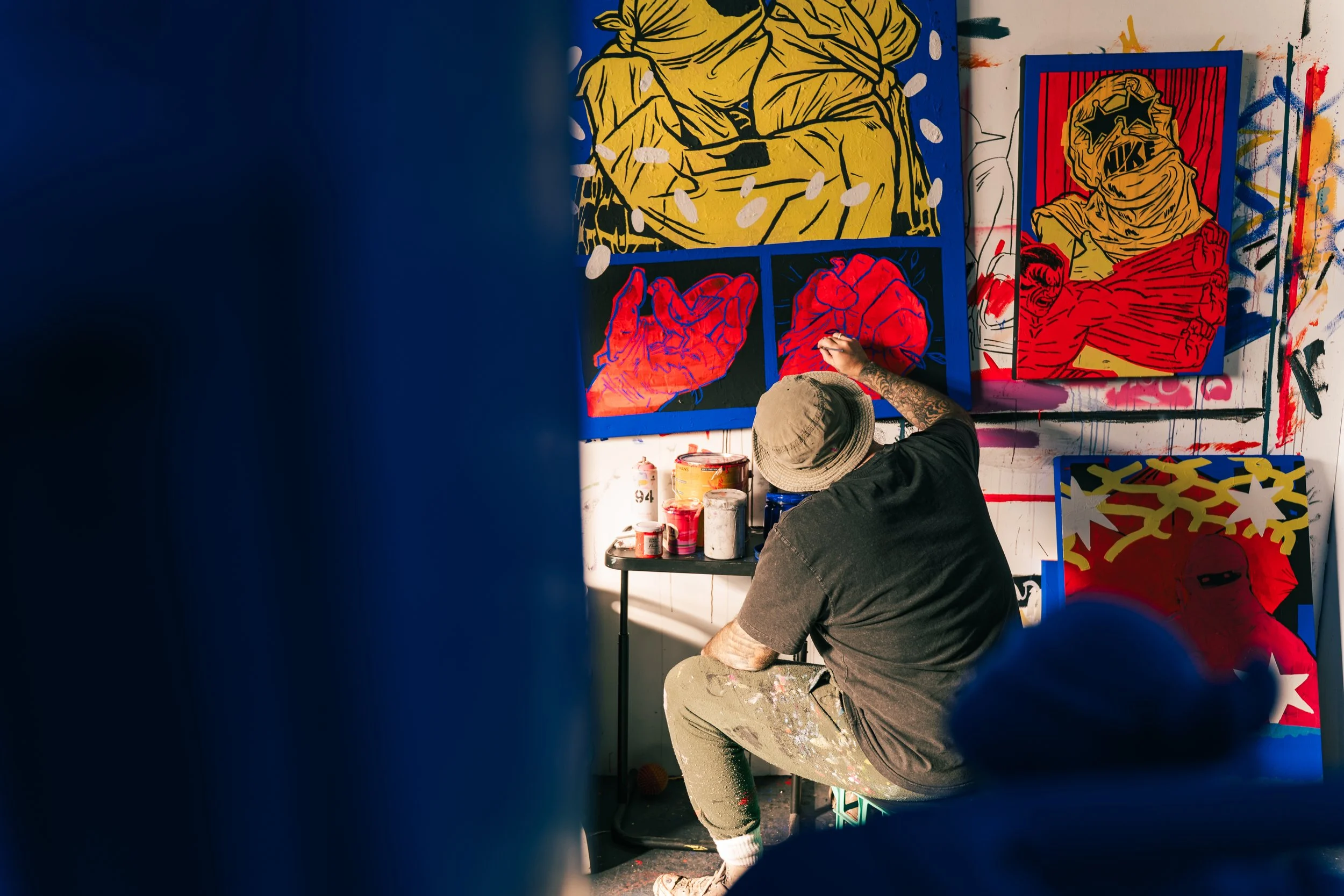 JESWRI is a Gadigal artist, street artist, and storyteller living on Wurundjeri Country (Melbourne). His practice blends large-scale murals, graffiti influence, and contemporary First Nations perspectives to explore what it means to exist—loudly and fractured —in modern Australia. Raised in Sydney’s Inner West graffiti scene, “hectic” isn’t just a catchphrase, it’s a worldview: a term loaded with chaos, community, and expressiveness.